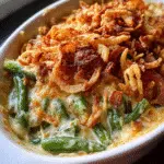 A creamy and cheesy casserole with green beans, topped with a golden crust. Perfect for holidays or any gathering.
