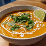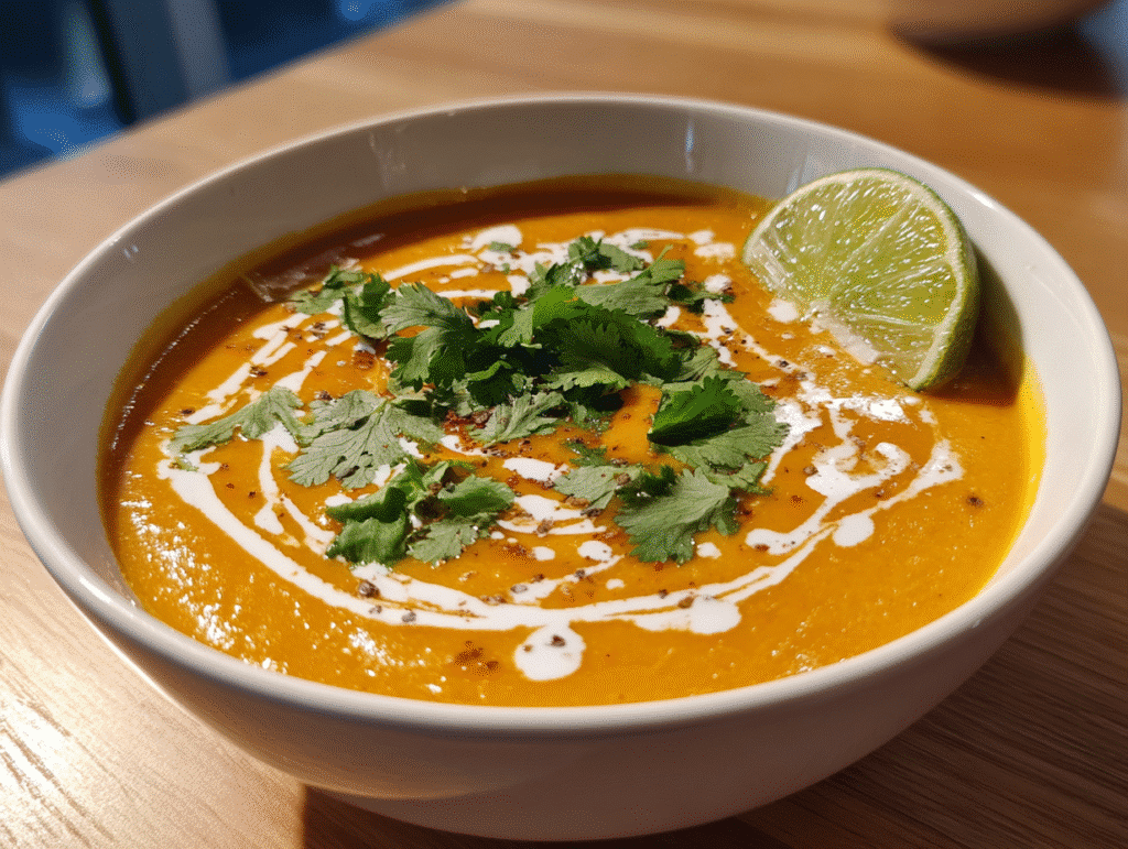 A rich and creamy sweet potato soup infused with warm spices, coconut milk, and a zesty lime finish for a perfect balance of flavors.