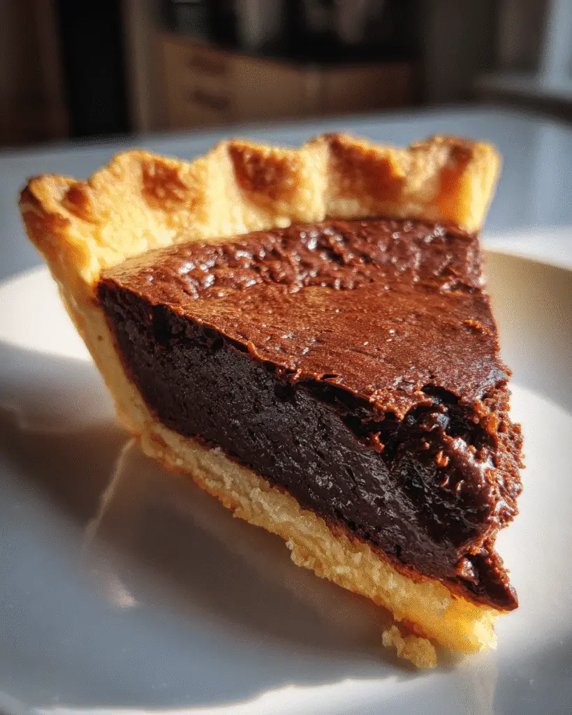 A rich and decadent dark chocolate chess pie with a flaky crust and smooth filling.