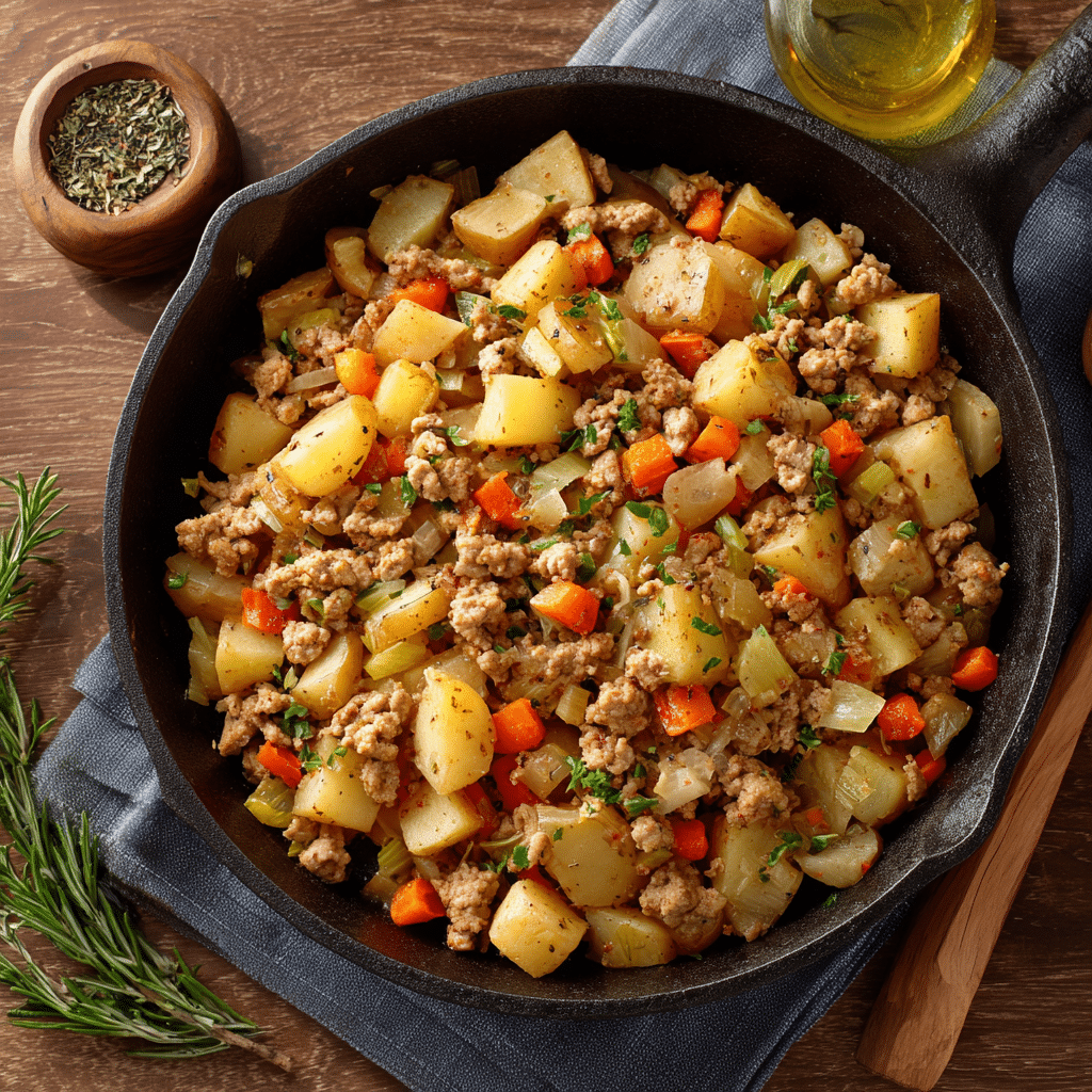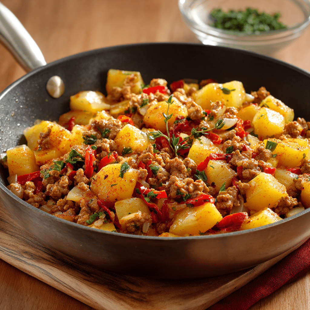 A simple and hearty one-skillet meal with ground turkey and potatoes. Quick to make and packed with flavor.