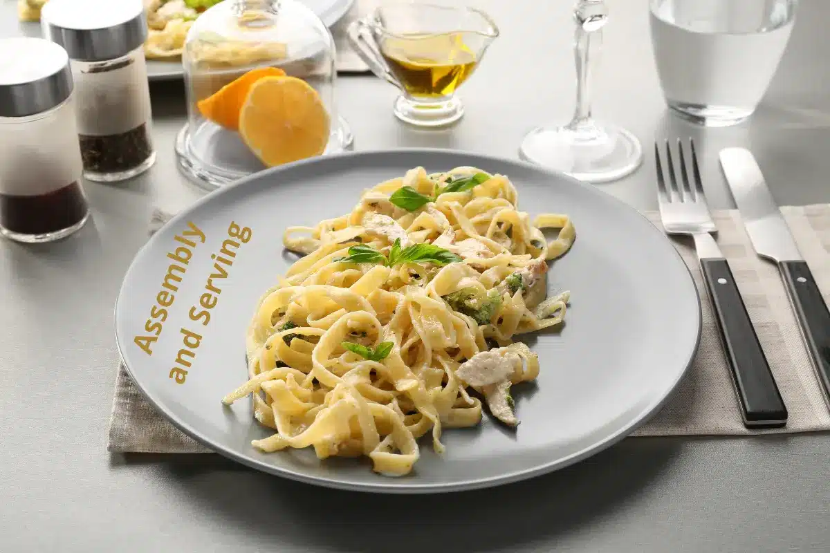 Stay tuned, as we’ll next explore how to assemble and serve this delightful dish, ensuring each plate is as inviting as it is delicious. The journey from pot to plate is almost complete, and the anticipation is as thick as our Alfredo sauce.