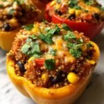 After making these more times than I can count, I’ve picked up some tricks to guarantee stellar results every single time. First, pick peppers with thick walls that stand upright—those flimsy ones collapse into sad pepper pancakes in the oven. Always rinse your quinoa (I use a fine mesh strainer) unless the package says pre-rinsed—that bitter coating is no joke! For the filling, let it cool slightly before stuffing so it thickens up and doesn’t make the peppers soggy. And here’s my favorite tip: underseason slightly—the flavors intensify as they bake, so what tastes bland raw will be perfect later!