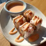 Spicy mayo adds a creamy and spicy kick to your sushi rolls. It’s easy to make with simple ingredients and pairs perfectly with seafood or vegetables.